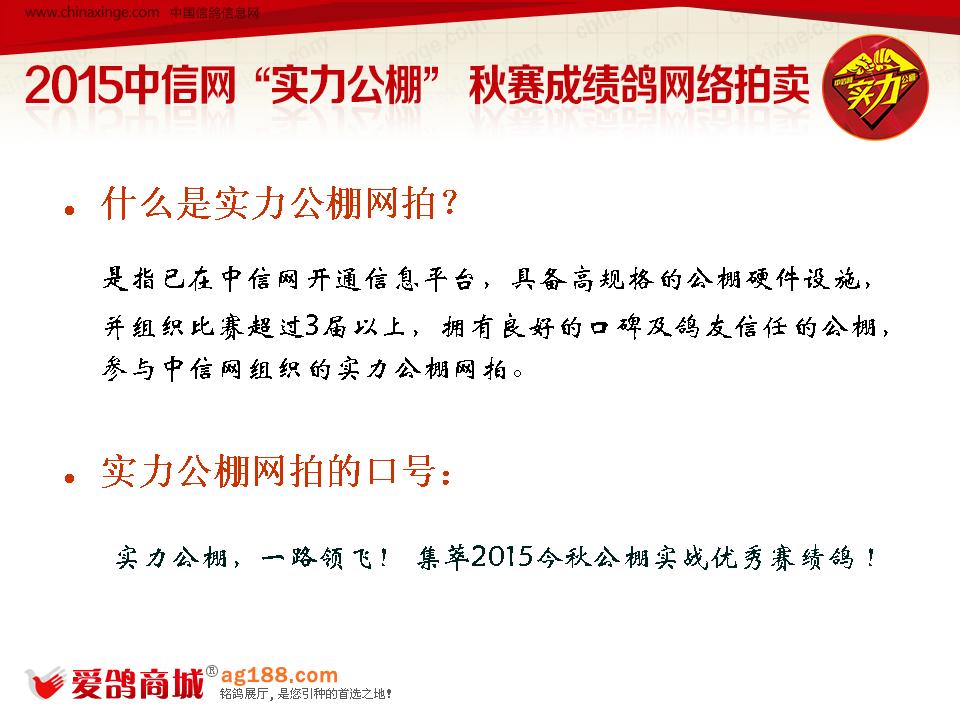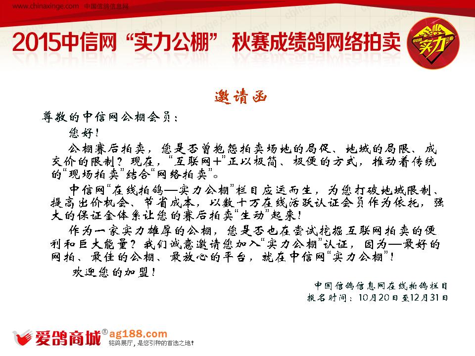 四、如何参加中信网组织的2015“实力公棚”秋赛成绩鸽网拍专题?