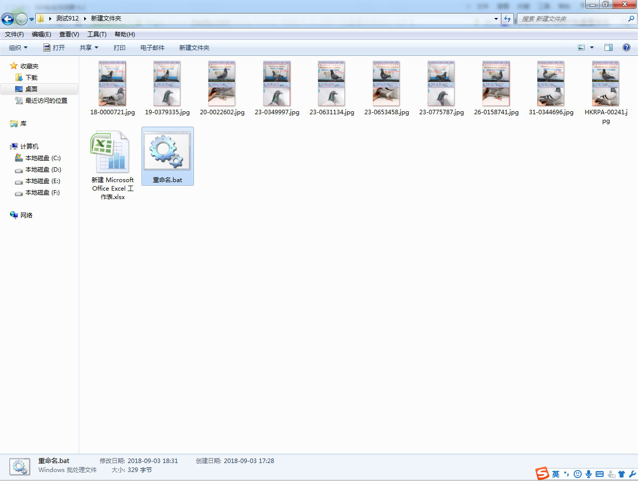 7、双击“重命名.bat”,进行批量改照片的文件名。打开赛鸽照片文件夹,你会发现已全部照片都已按照环号进行命名。